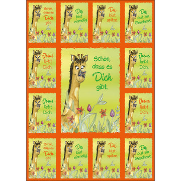 Karten mit Stickern für Kinder: Kleine Grüße und Geschenkaufkleber mit niedlicher Giraffenillustration