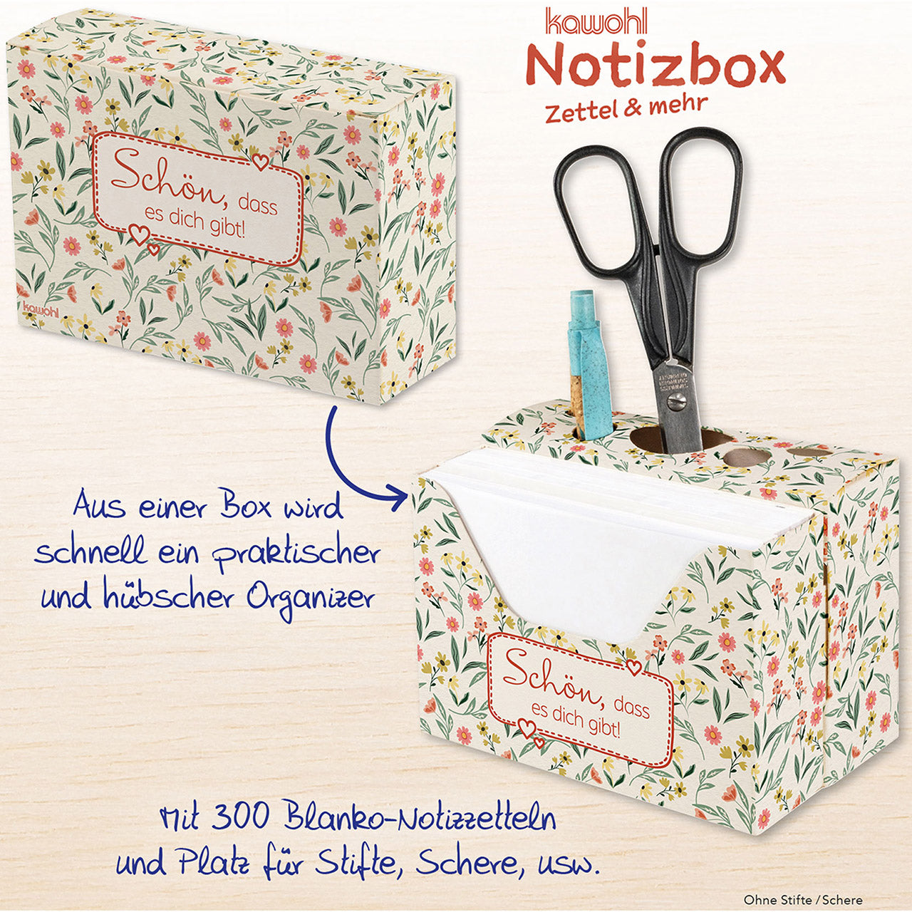 Zweiteilige Zettel-Box mit Stiftehalter - 300 Blanko-Zettel