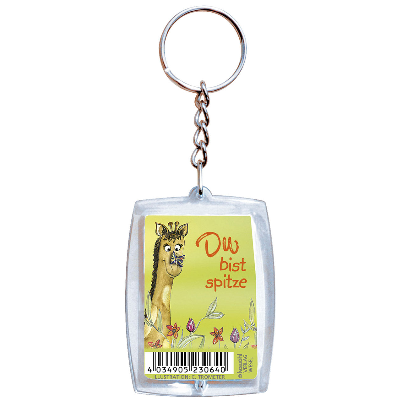 Schlüsselanhänger aus glasklarem Plexiglas, mit starker Anhängerkette.