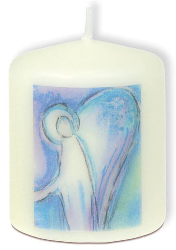 Schutzengel - Kerze (Blau/Weiß) 6 x 5 cm
