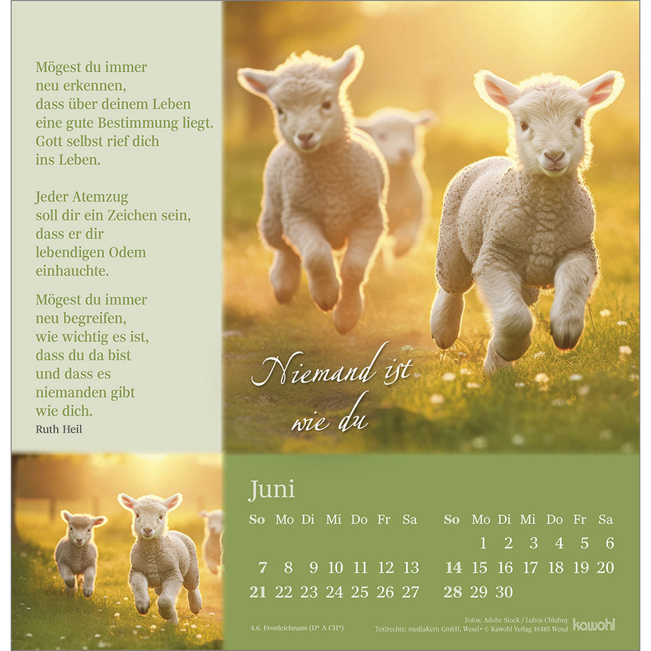 Wohltuend wie Balsam wirken die Texte und Bilder und stärken Ihr Vertrauen in Gottes unendliche Liebe. Lassen Sie sich von Impulsen voller Trost, Zuspruch und Geborgenheit berühren und schöpfen Sie Zuversicht für Ihren Weg durch das Jahr.