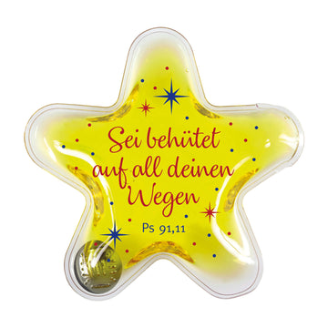 Praktisch für unterwegs, Stern bedruckt mit "Sei behütet auf all deinen Wegen Ps 91,11", liebevoll grafisch umgesetzt. Wiederverwendbar: Dazu das benutzte Wärmekissen vor dem nächsten Gebrauch einige Minuten in kochendes Wasser legen, bis sich die Salzkristalle in dem Kissen aufgelöst und verflüssigt haben.