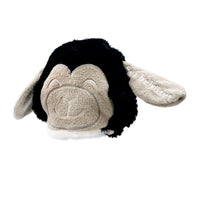 Gleich zwei kuschelweiche Schäfchen vereint das Wendeschäfchen "Flocke". Stülpt man die Seite mit dem schwarzen Köpfchen um erscheint das helle Gesichtchen und umgekehrt. Ein Ohr ist jeweils mit dem Stick "Sei behütet" versehen.