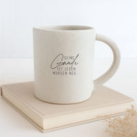 Diese zu 100% handgefertigte Steingut-Tasse mit ihrer reaktiven Sesamglasur und der Gravur "Seine Gnade ist jeden Morgen neu" ist mehr als ein Alltagsgegenstand - sie ist eine tägliche Erinnerung an die unendliche Gnade und Liebe Gottes, die uns jeden Morgen aufs Neue begegnet. Perfekt für den Start in den Tag oder eine ruhige Auszeit mit einem heißen Getränk.