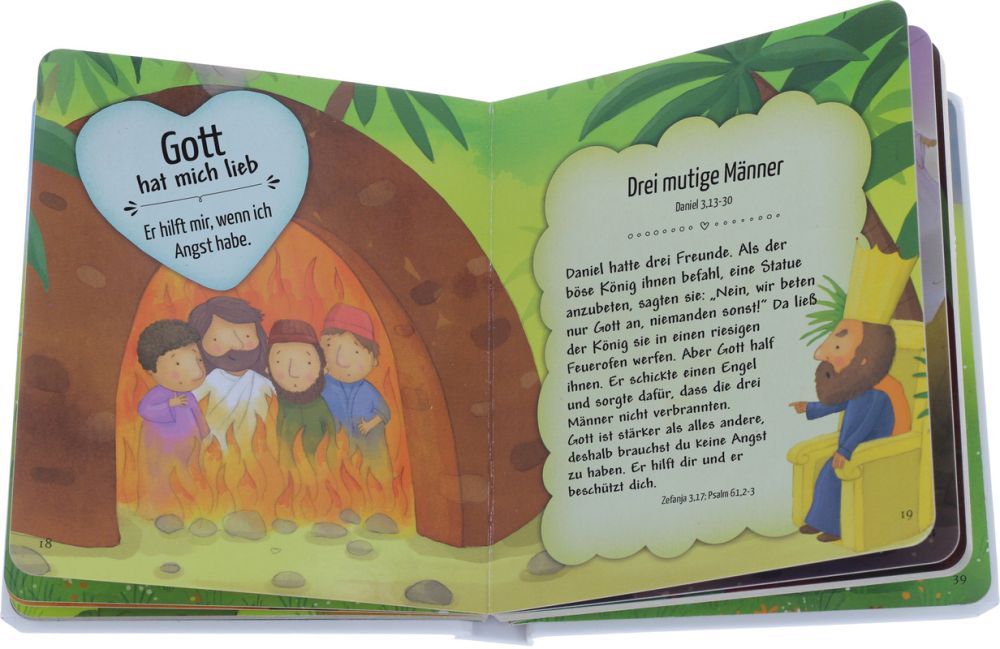 Die angegebenen Bibelstellen zeigen Eltern, wo sie die Geschichten nachlesen können. Eine tolle Hilfe, um mit Kindern ins Gespräch zu kommen!