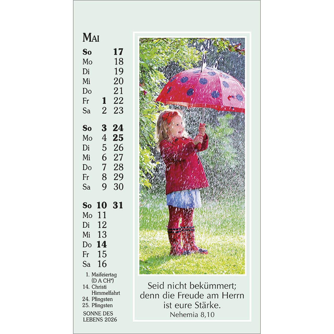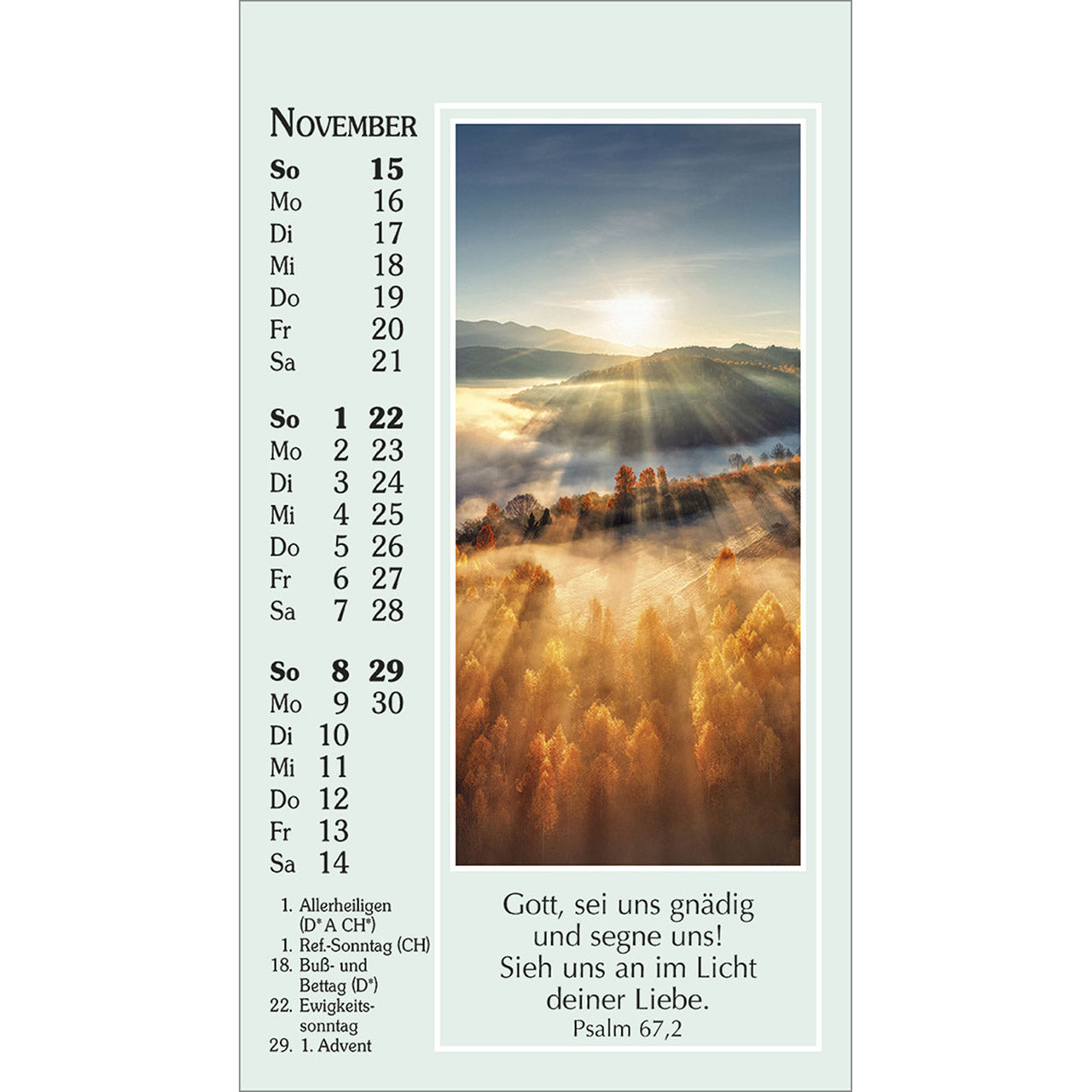 Mit Bibelworten und freundlichen Bildern ausgestattet, ist dieser beliebte und geschätzte Kalender im schlanken Format ein hübsches preiswertes Geschenk.