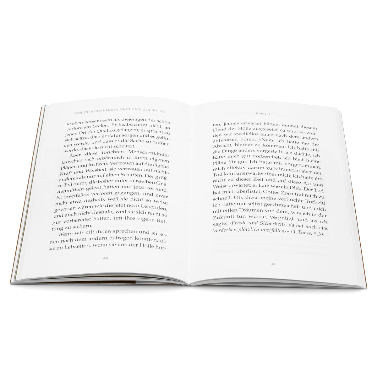 Diese Predigt ist das bekannteste Werk von Jonathan Edwards, jenem herausragenden Prediger. Sie wurde während der Großen Erweckung von Gott gebraucht, um den Verstand und die Herzen vieler Menschen für die Unsicherheit unseres zerbrechlichen Lebens, die Realität Seiner Existenz und die Härte Seines kommenden Gerichts zu öffnen. Mit anschaulichen Bildern und unerbittlichem Nachdruck warnt Edwards vor den Schrecken der ewigen Verdammnis und fordert seine Zuhörer auf, dem zukünftigen Zorn zu entfliehen und ihr Vertrauen auf Christus zu setzen.