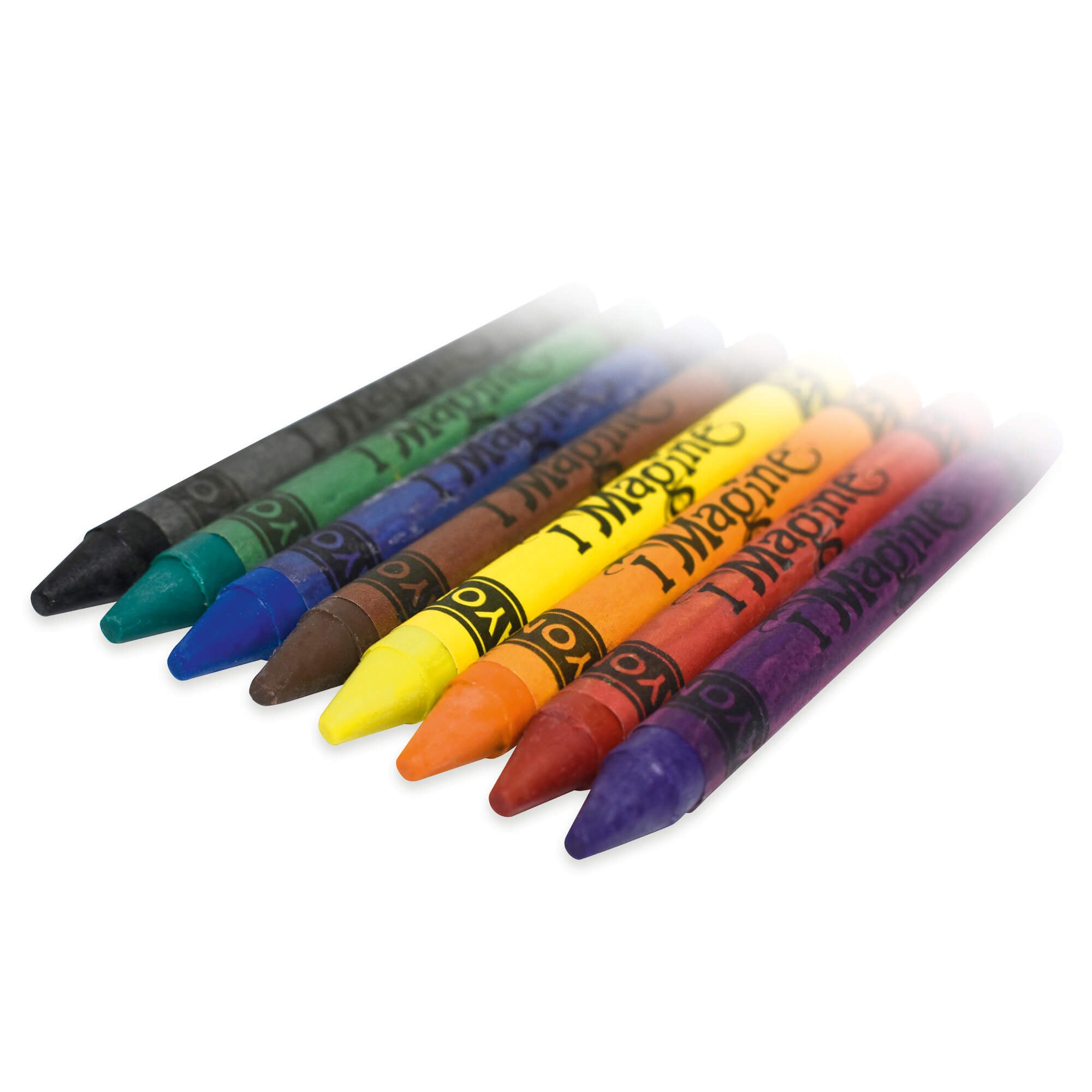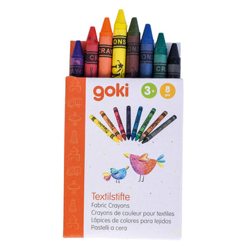 Wachsmalstifte in acht kräftigen Farben zum Bemalen von Textilien, z. B. Baumwolltaschen (Art- Nr. 971354 und 971355) oder T-Shirts.