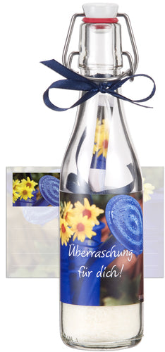 Flaschengruß mit Grußbotschaft und Schafmilchseife - Natur