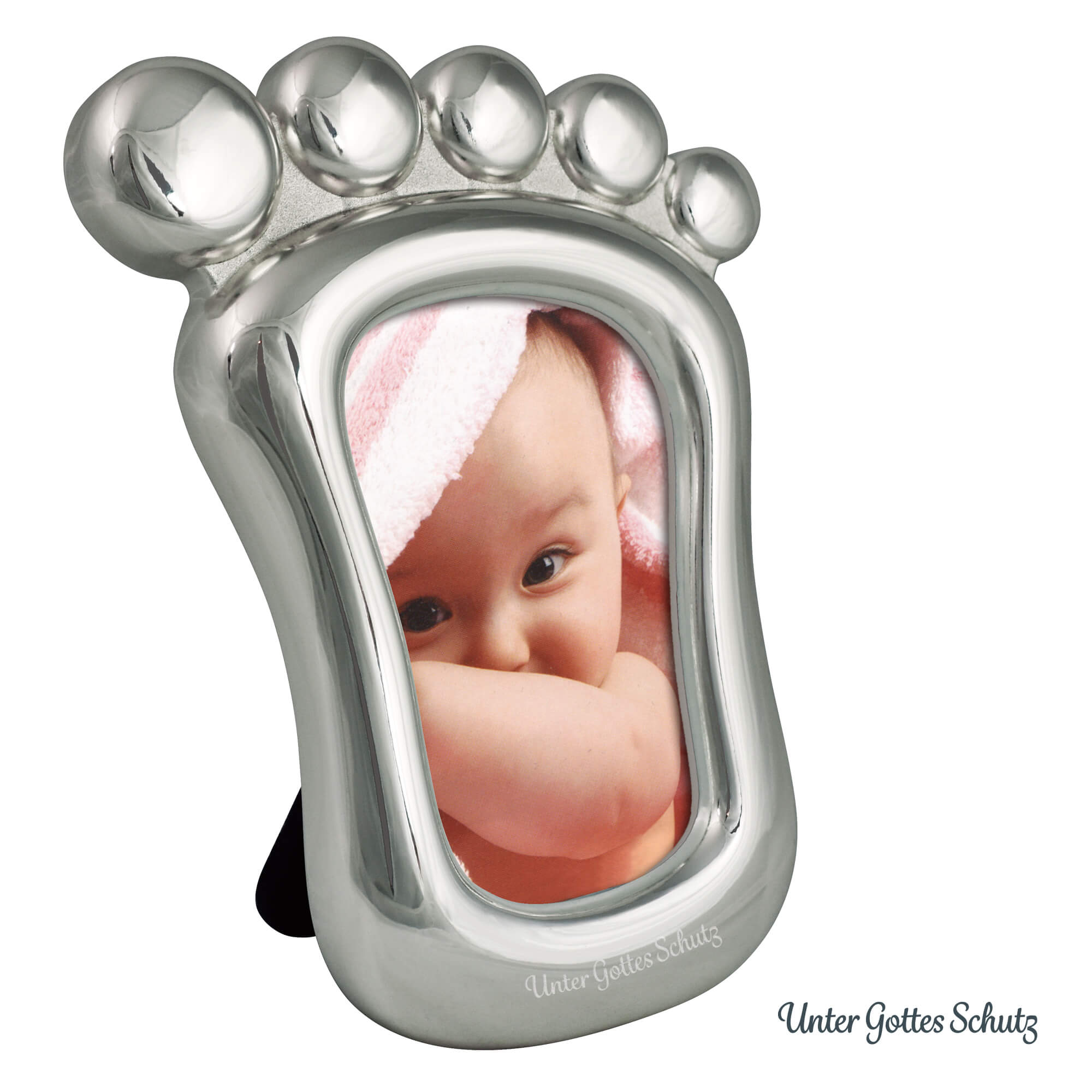 Unter Gottes Schutz - Bilderrahmen (Fuß-Form versilbert)