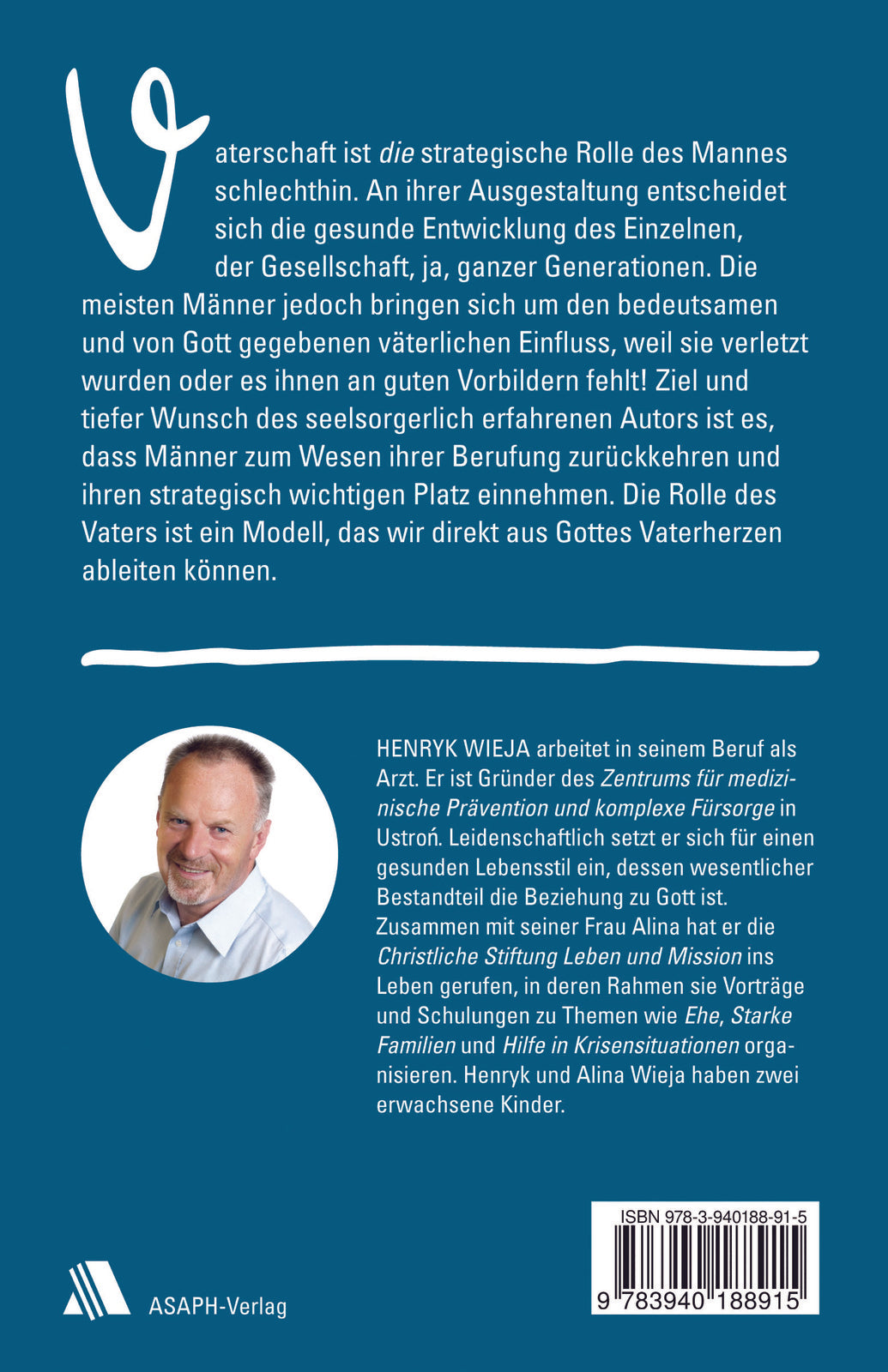 Vaterschaft ist die strategische Rolle des Mannes schlechthin. An ihrer Ausgestaltung entscheidet sich die gesunde Entwicklung des Einzelnen, der Gesellschaft, ja, ganzer Generationen. Es muss jedoch ehrlich festgestellt werden, dass die meisten Männer sich aufgrund eigener Wunden und des Mangels an guten Vorbildern um den bedeutsamen väterlichen Einfluss gebracht haben, den Gott uns gegeben hat! Ziel und tiefer Wunsch des Autors, eines auch seelsorgerlich erfahrenen Arztes, ist es, Männer dazu zu ermutigen, zum Wesen ihrer Berufung zurückzukehren und ihren strategisch wichtigen Platz einzunehmen. Die Rolle des Vaters ist ein Modell, das wir aus Gottes Vaterherzen selbst ableiten können.