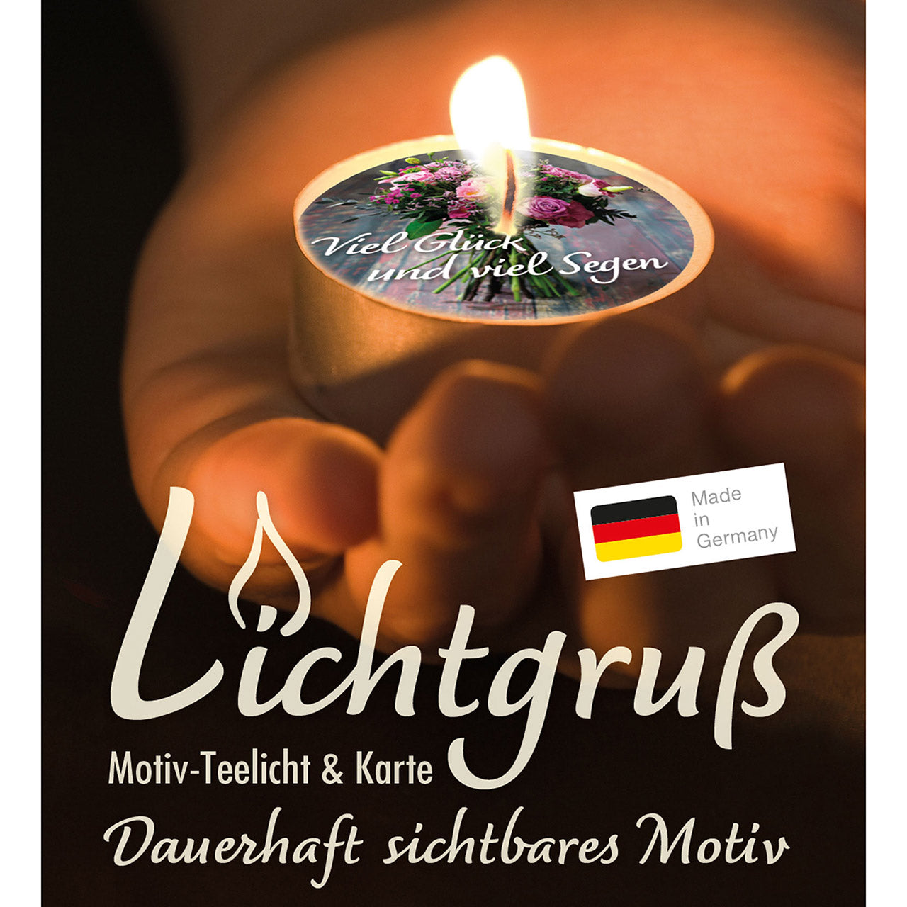 Lichtgruß: Karte und Teelicht im Set - die leuchtende Überraschung!