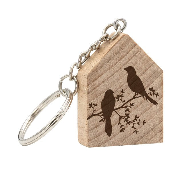 Vögel auf Zweig - Schlüsselanhänger (Buchenholz)