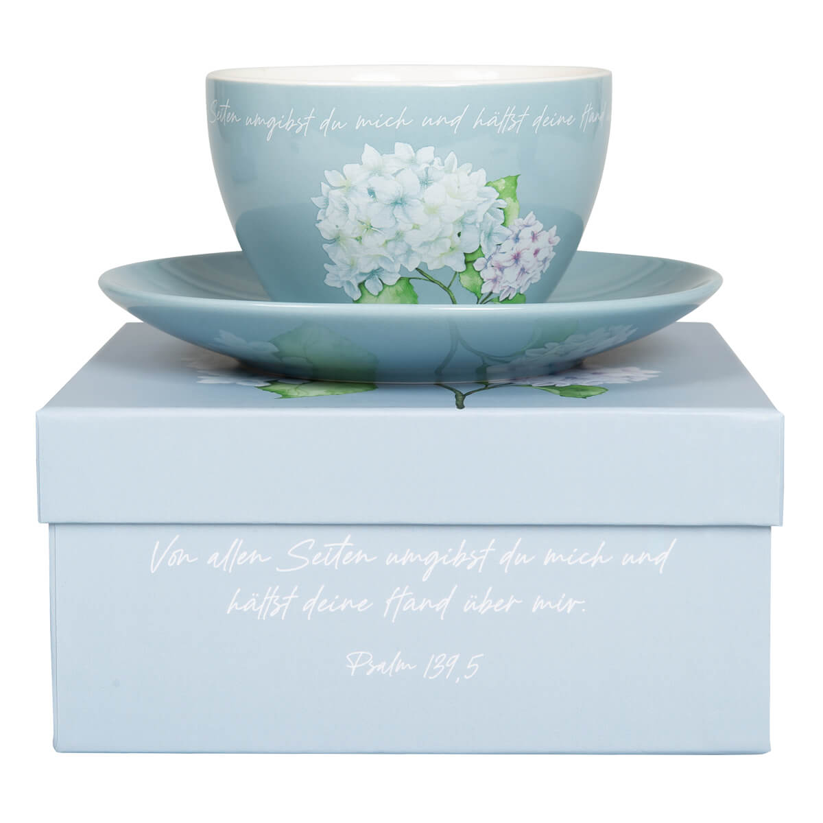 Von allen Seiten umgibst du mich - Tasse mit Untertasse Hortensie
