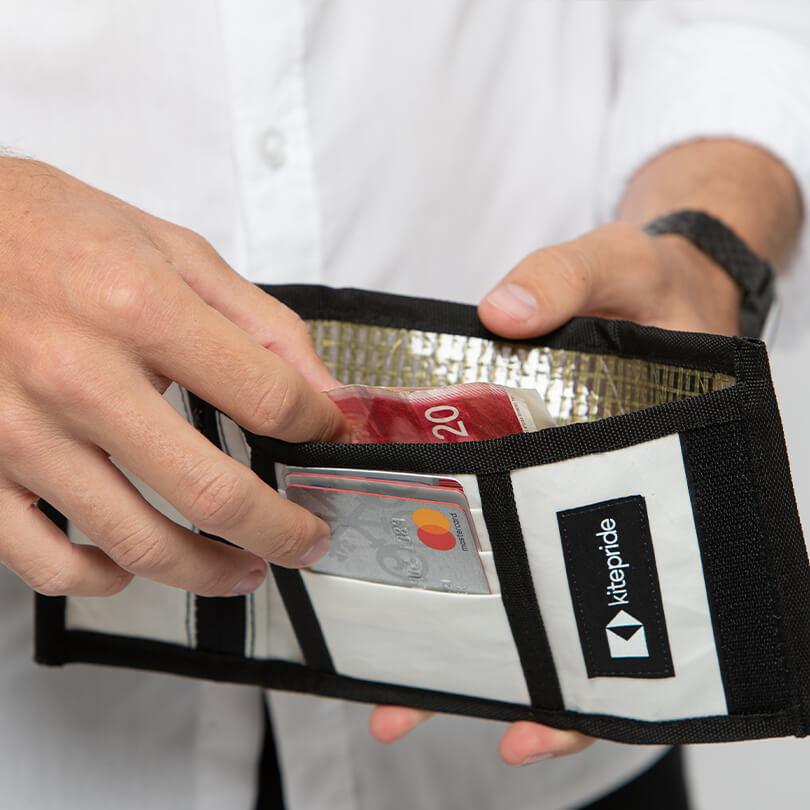 Die in Tel Aviv handgefertigte Wallet gibt Yacht-Segeln, die sonst auf der Mülldeponie gelandet wären, ein ganz neues Leben. Das Portemonnaie überdenkt die traditionelle Form, um den Stauraum durch minimalistisches Design zu maximieren mit einem Fach für Geldscheine, einem Münzfach mit Reißverschluss und drei Kreditkartenfächern. Jedes Kartenfach kann mehrere Karten aufnehmen, sodass es viel Platz für alle deine Kreditkarten, Ausweise, Kundenkarten, Mitgliedskarten und all die anderen Karten gibt, die sich im Leben so ansammeln