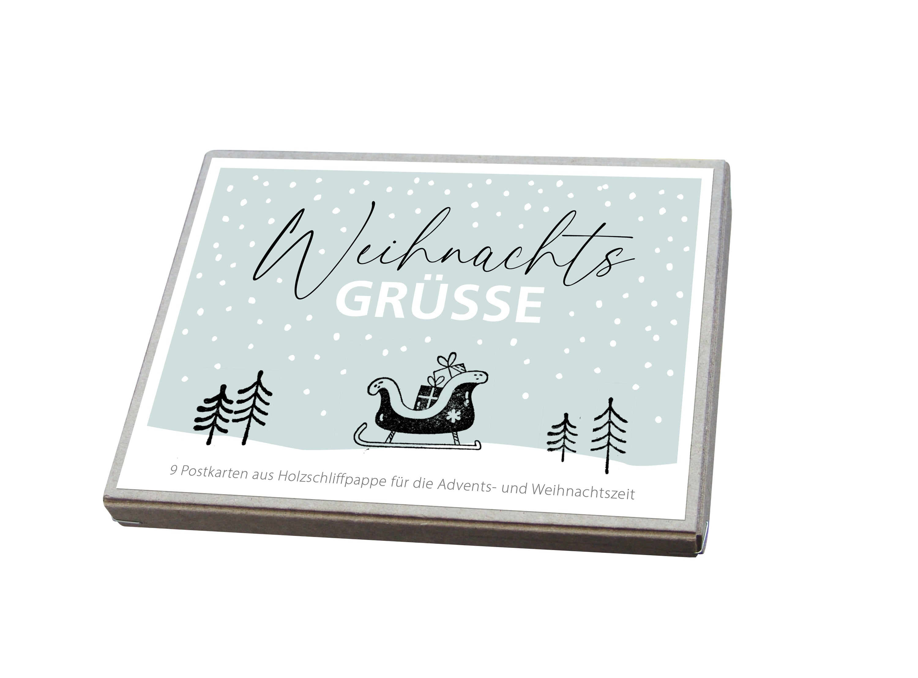 9 Postkarten aus Holzschliffpappe für die Advents- und Weihnachtszeit