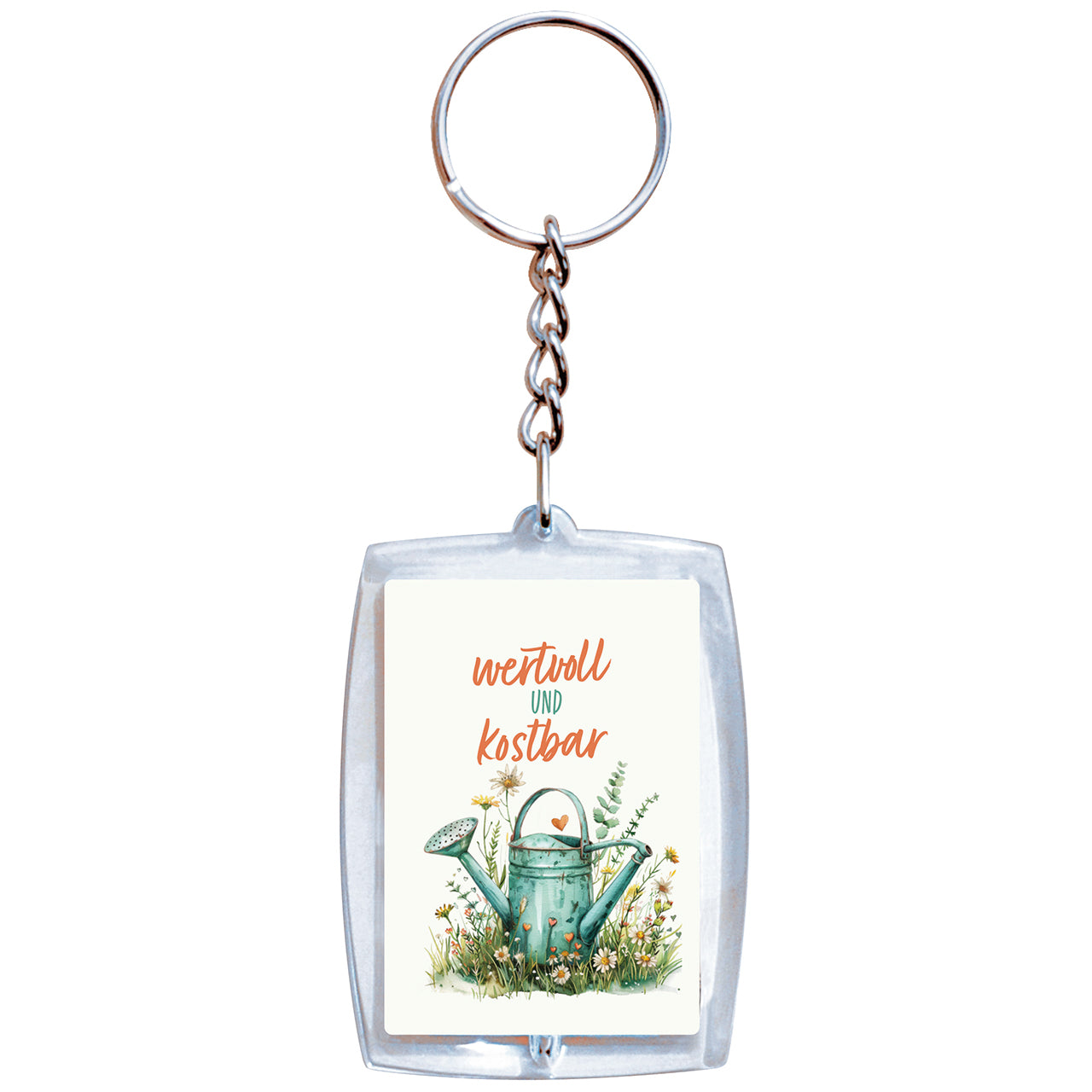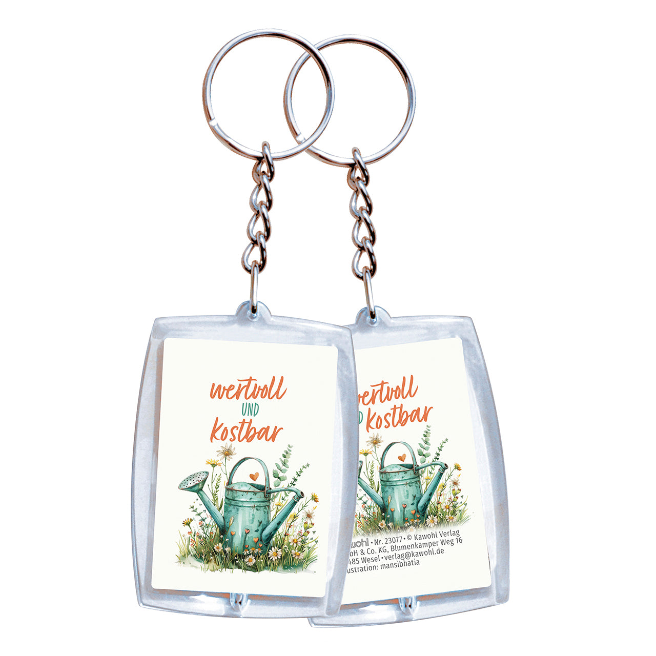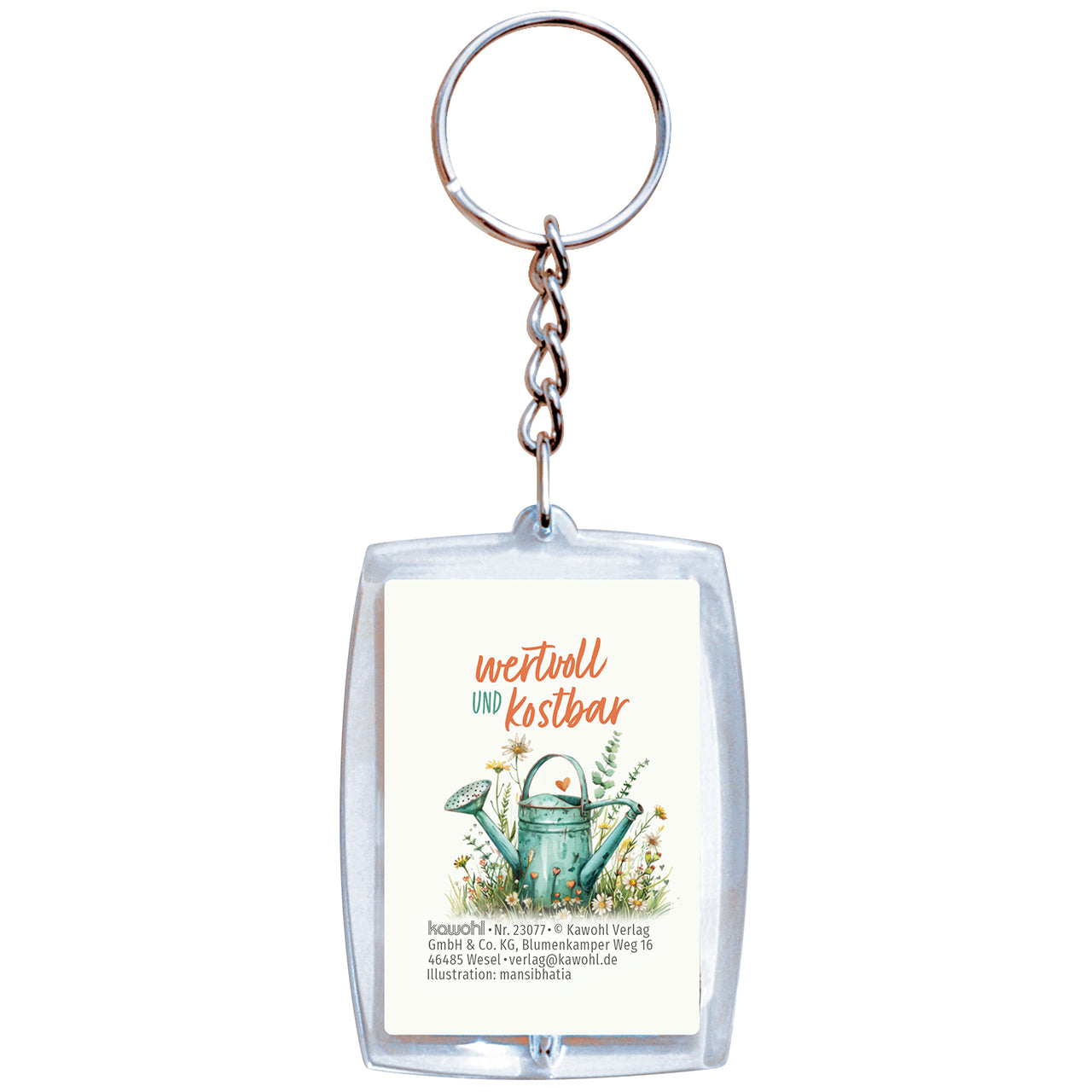 Schlüsselanhänger aus glasklarem Plexiglas, mit starker Anhängerkette.