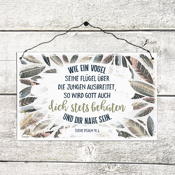 Wie ein Vogel seine Flügel (Holzschild)