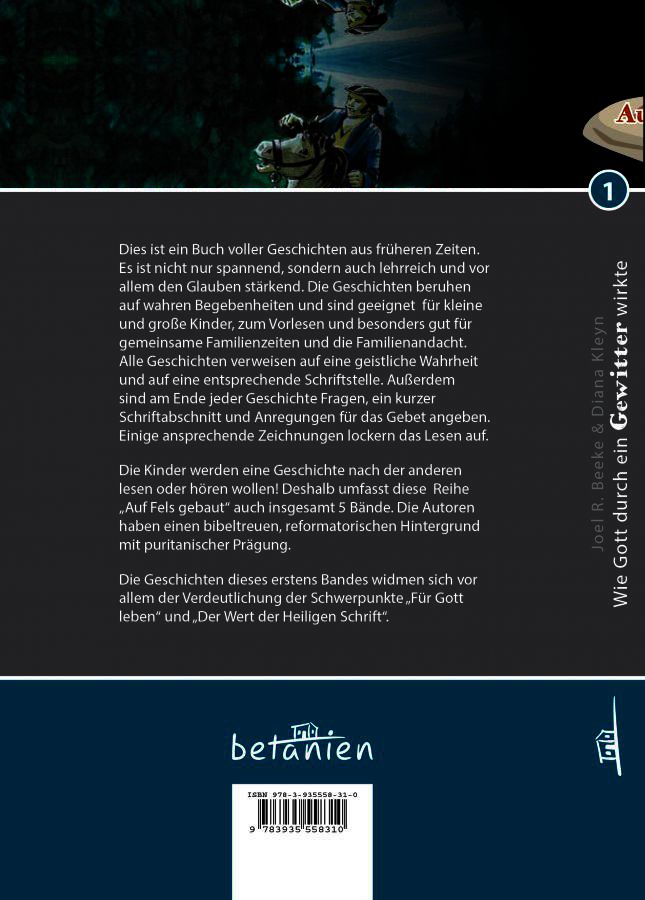 Die Kinder werden eine Geschichte nach der anderen lesen oder hören wollen! Deshalb umfasst diese Reihe "Auf Fels gebaut" auch insgesamt 5 Bände. Die Autoren haben einen bibeltreuen, reformatorischen Hintergrund mit puritanischer Prägung.