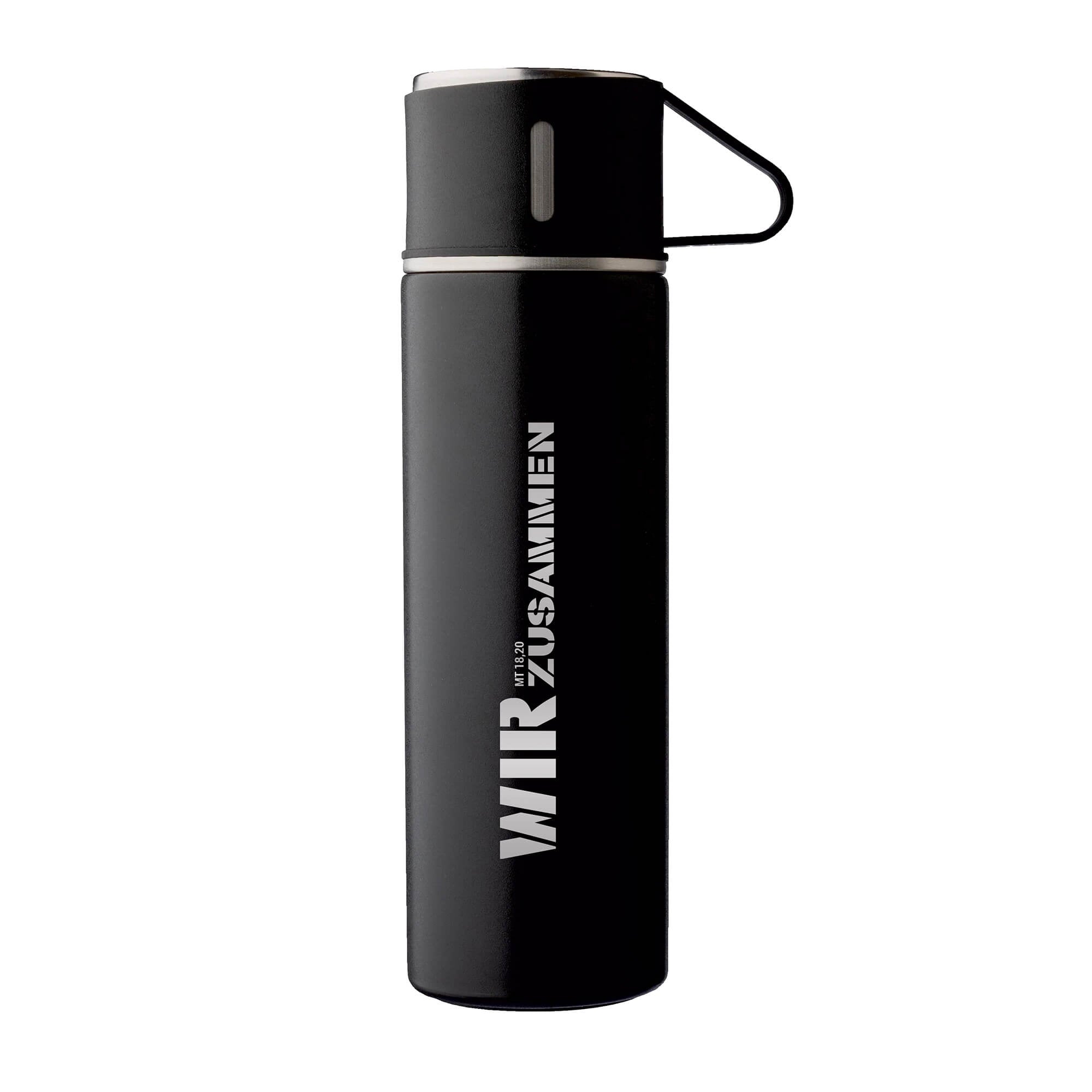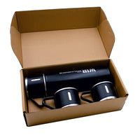 Das Set im eleganten schwarz beinhaltet eine Thermoskanne mit insgesamt drei Tassen, von denen eine sich als Verschluss nutzen lässt.