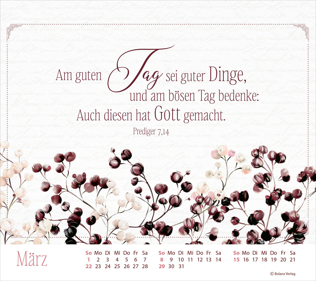 Worte sind nicht leer! Die poetischen Gedanken aus der Bibel in diesem Kalender treffen, ermutigen und begleiten Sie in ihrer positiven Gestaltung durchs ganze Jahr.