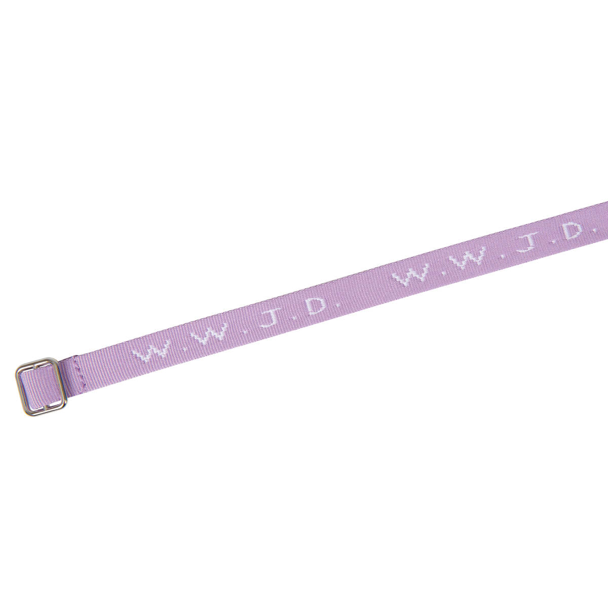 Gewebtes Armband W.W.J.D. mit Metallverschluss zum variablen Einstellen der Größe.