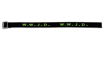 Gewebte, schwarze Armbänder mit Metallschnalle in bewährter Qualität, mit Text "W.W.J.D." in verschiedenen Neonfarben, Länge ca. 25 cm