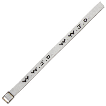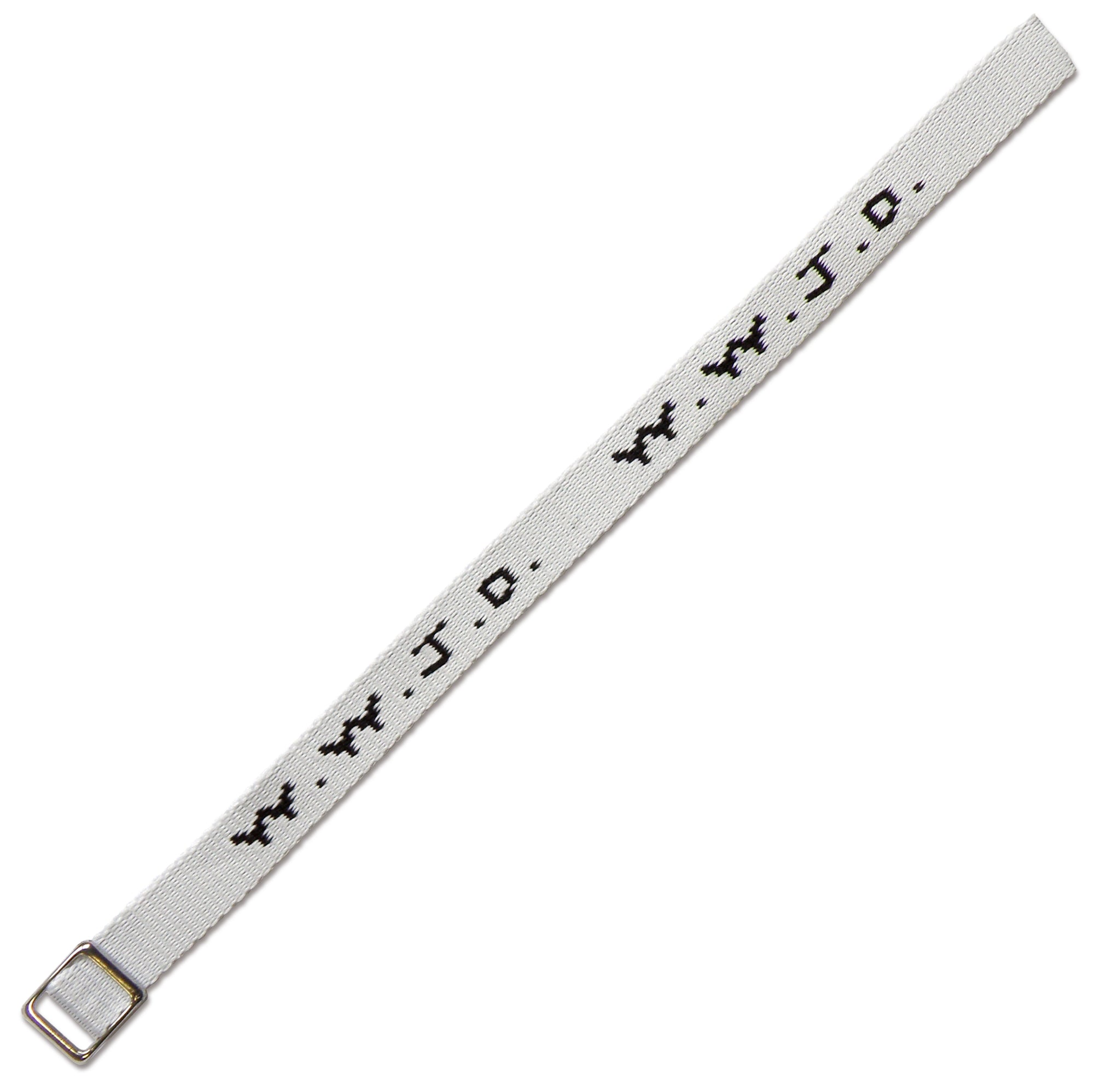 gewebtes Armband mit Text: W.W.J.D. = What would Jesus do? (Was würde Jesus tun?)