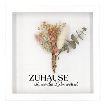 Dieser hochwertige Bilderrahmen mit echtem Trockenstrauß ist ein außergewöhnlicher Wandschmuck, der die Herzen höher schlagen lässt. Neben dem schönen Trockenstrauß ist auf dem Bilderrahmen ein inspirierender Spruch direkt auf Glas gedruckt. Der Trockenstrauß ist von Hand gebunden und der Bilderrahmen ist ebenfalls von Hand gefertigt. Der Bilderrahmen mit Trockenstrauß ist ein echter Hingucker für jede Wand.