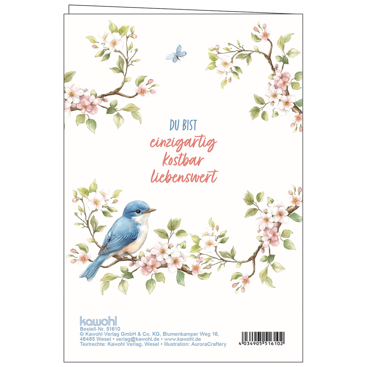 Mit dieser schönen Geburtstagskarte überreichen Sie Glückwünsche und persönliche Worte, verbunden mit einer guten Botschaft, in liebevoller Gestaltung.