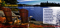 zum Aufstellen zickzackgefalzt, jeweils 6 Seiten, Seitenformat 10,5 x 14,8 cm, mit Einlegeblatt (für eigene Widmung/Grüße) und Briefhülle, einzeln zellophaniert. Auf der Vorderseite der Zellophanhülle befindet